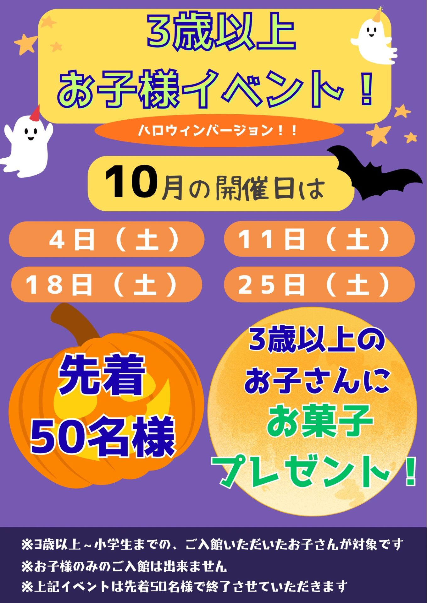 今年は10月の毎週土曜日にご来館されたお子さん(先着50名様)に
