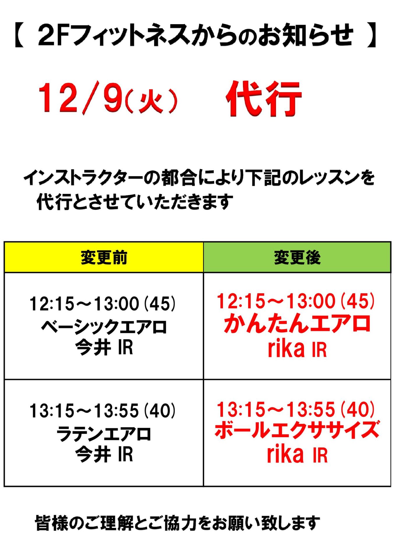 12月9日 代行のお知らせ