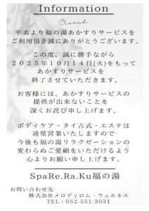 リラクゼーションよりお知らせ